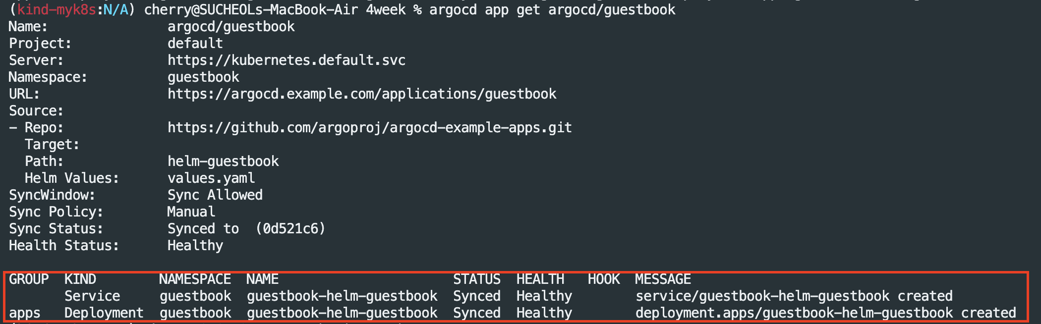 - Argo CD의 '애플리케이션 컨트롤러'가 이 Application 리소스를 감시하다가, Git의 '원하는 상태'와 클러스터의 '실제 상태'가 다르면 동기화(Sync)를 수행합니다.