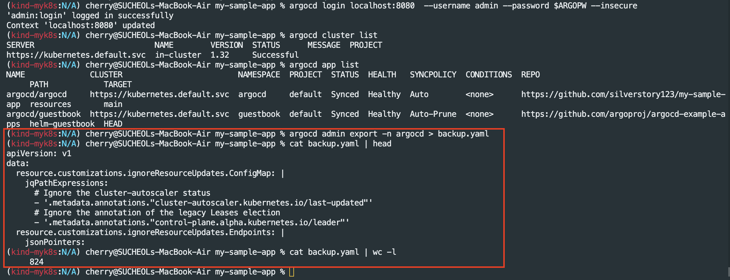 - Argo CD 백업 생성