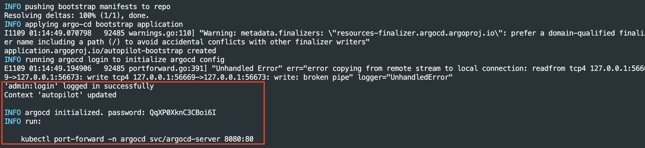 argocd login localhost:8080 --username admin --password $ARGOPW --insecure