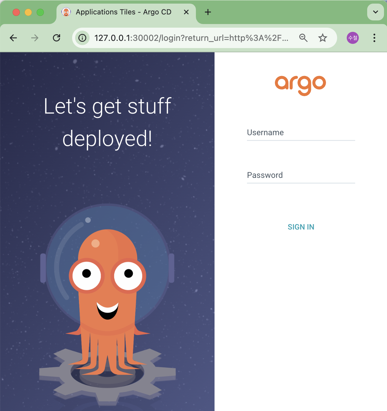 # argocd 서버 (http) 로그인