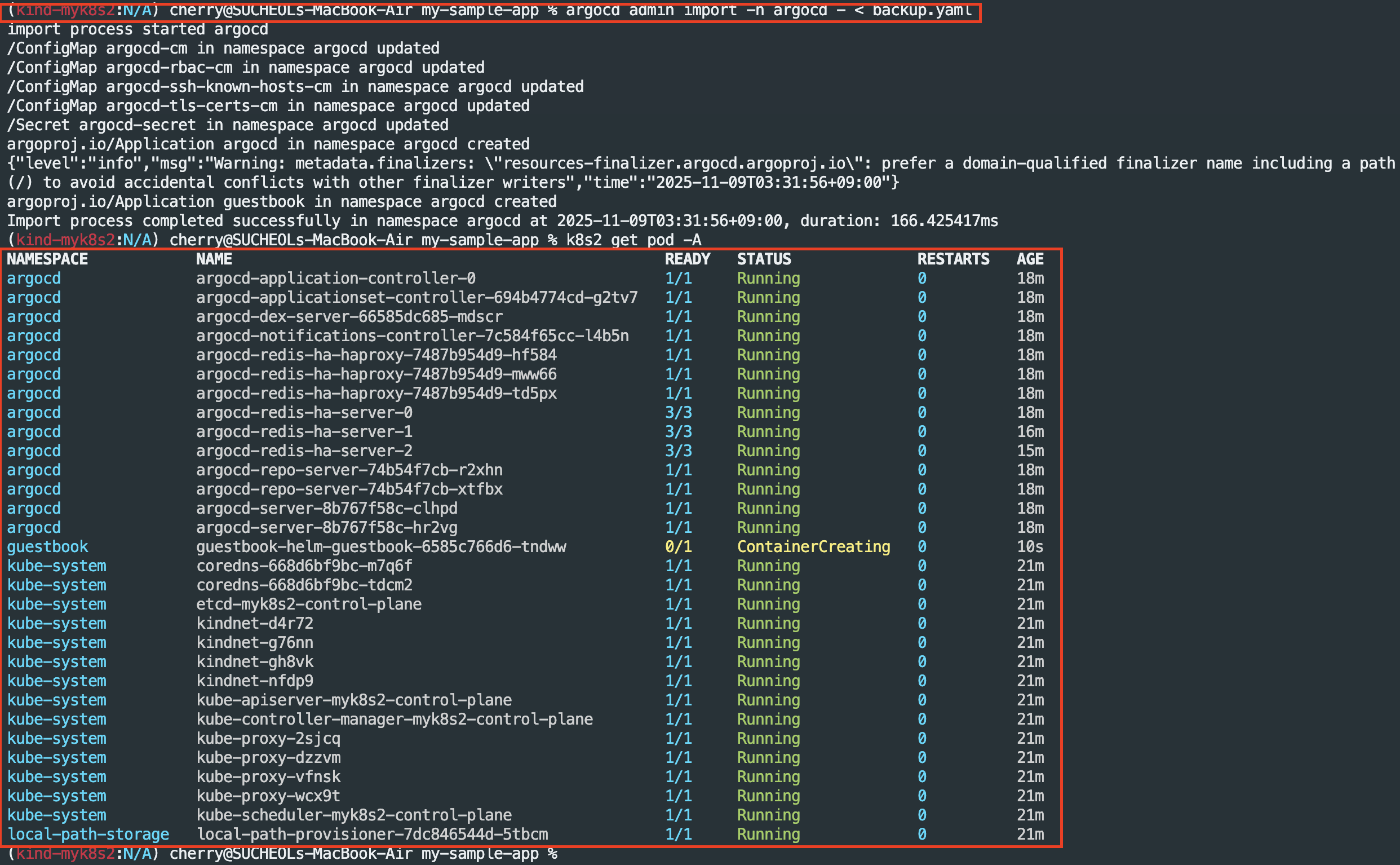 argocd admin import -n argocd - < backup.yaml