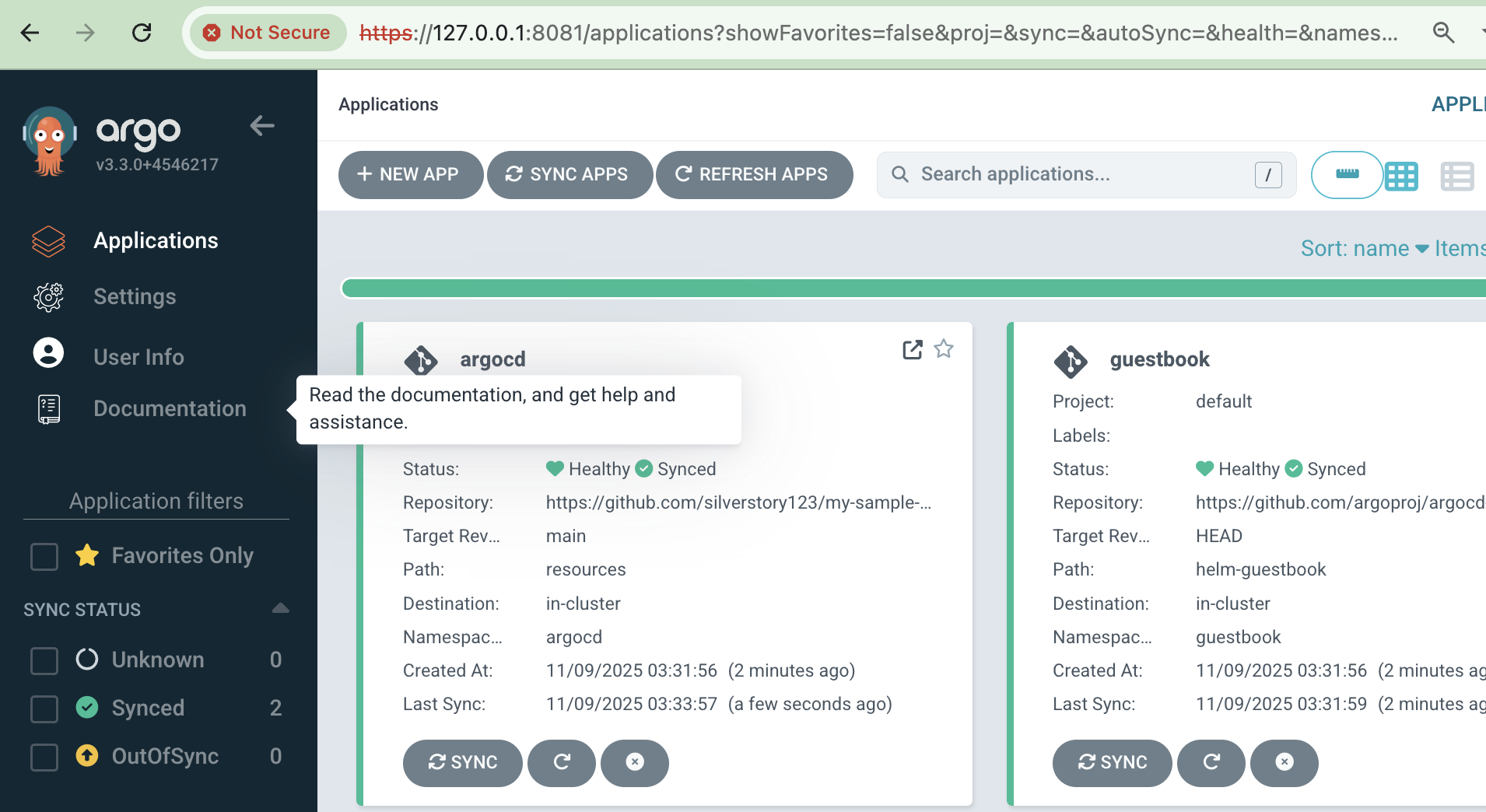 argocd login localhost:8081 --username admin --password $ARGOPW2 --insecure