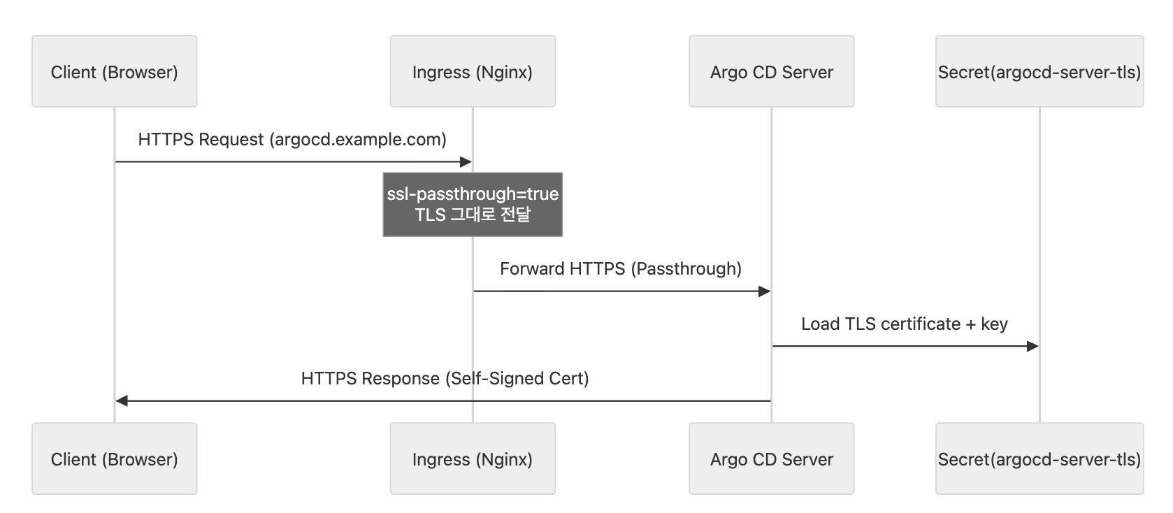 TLS 통신 과정(Client > ingress > Argo CD Server > Secret)