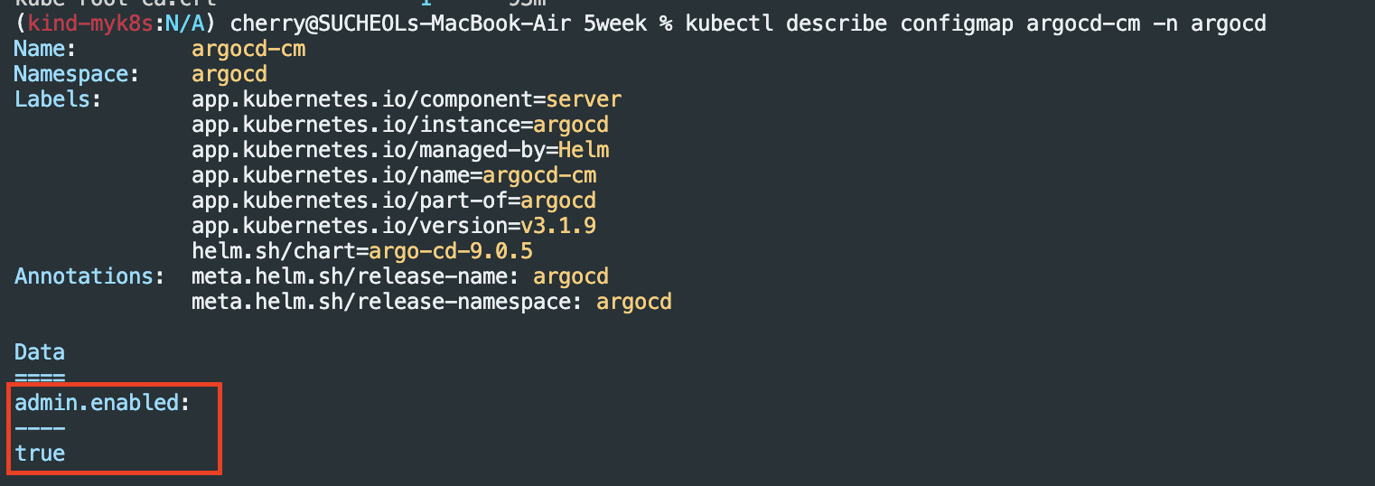 - Argo CD에서 선언적 사용자란 핵심 설정 파일인 argocd-cm(configmap) 내에 코드로 직접 정의하고 관리하는 로컬 사용자 계정을 의미한다.