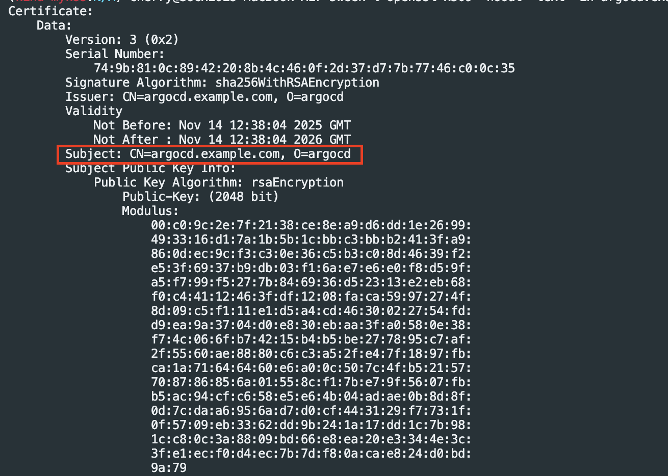 TLS 인증서 확인(발급 기관 : argocd.example.com)