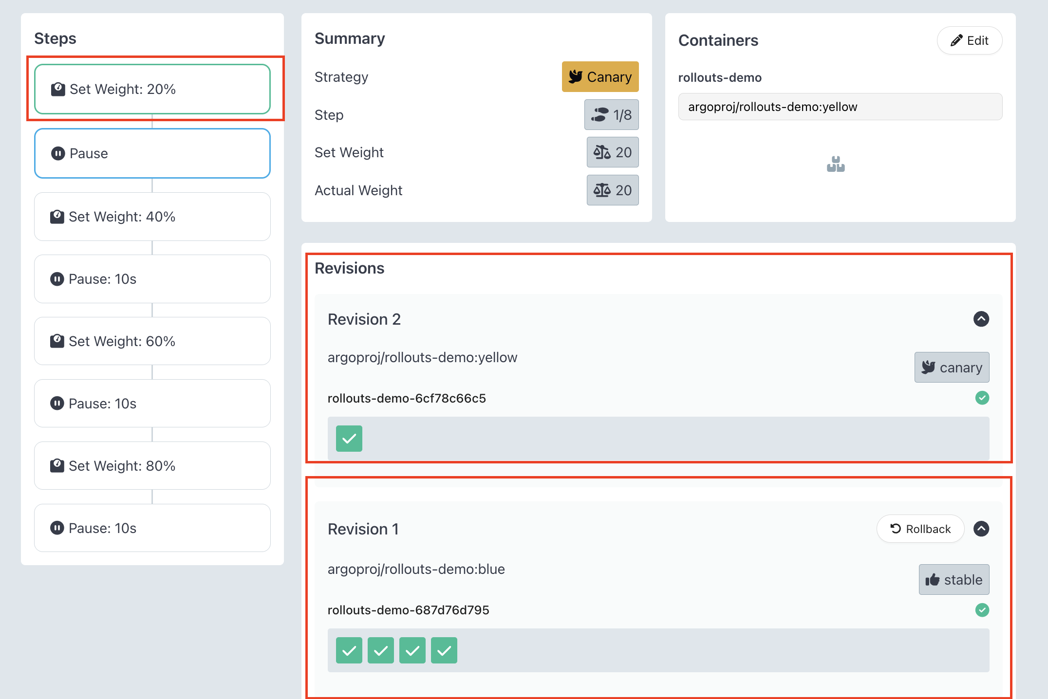 rollouts-demo ROLLOUT 확인