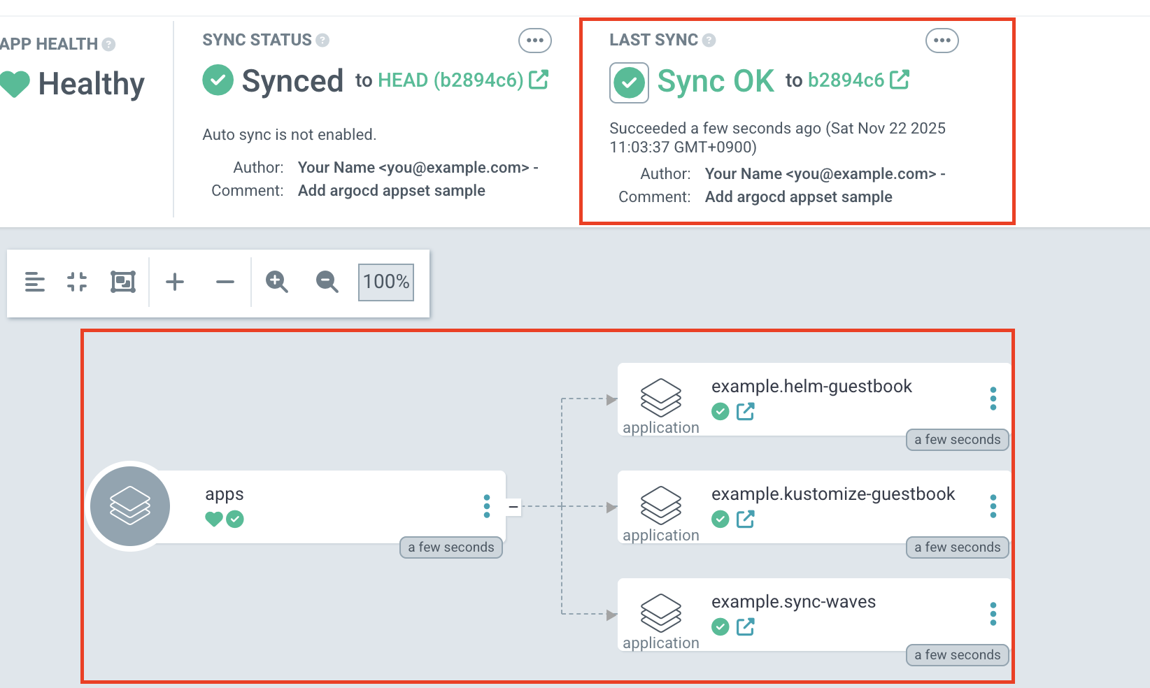 - 중앙 집중식 : 모든 애플리케이션의 배포 상태 및 구성을 단일 Git 저장소 (Root App이 참조하는 곳)를 통해 중앙에서 관리 가능