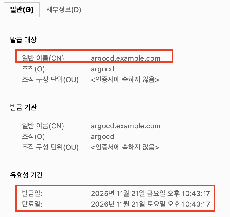 로컬 PC - OpenSSL 개인키, 인증키 생성(argocd.example.com)