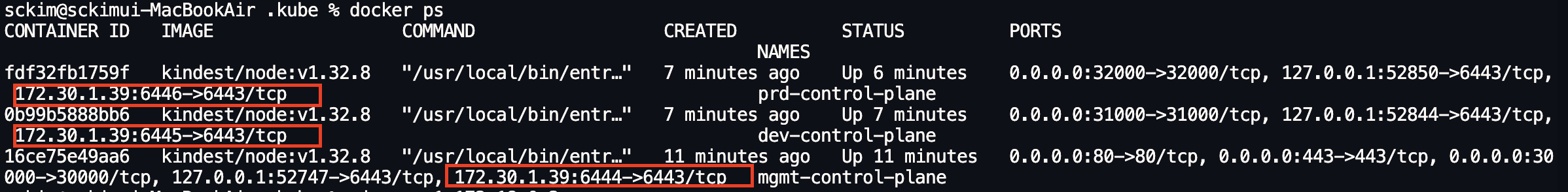 hostPort: 6445 # 6443 포트를 호스트 PC의 6445 포트에 매핑