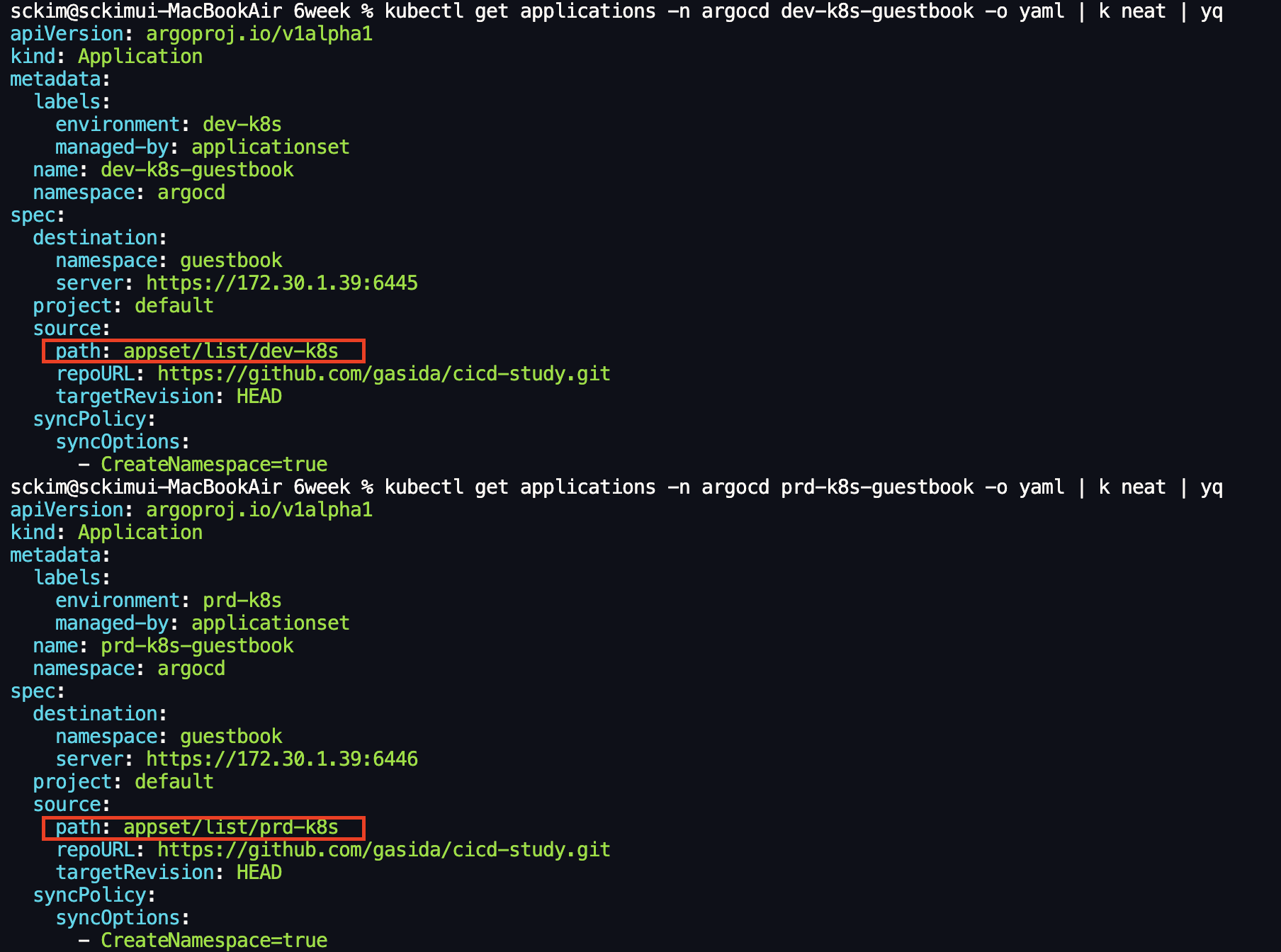 ApplicationSet - kind-dev, kind-prd 각 Pod 정보 확인